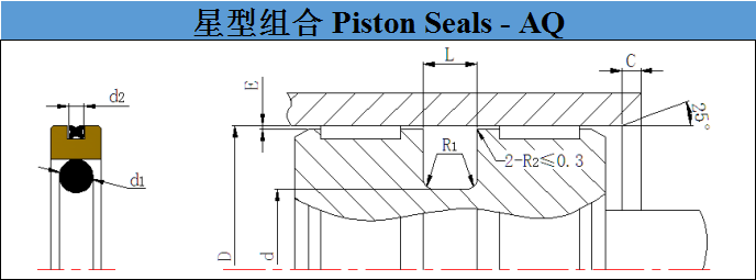 標準材料星形圈:丁腈橡膠NBR或氟橡膠FKM0形圈:丁腈橡膠NBR或氟橡膠FKM特點-在需要將兩種介質分離(例如:流體/流體或流體/氣體)的場合,密封效率高-集低摩擦與高彈性于一身,具有雙重安全性-良好的動靜密封性能-可允許較大的擠出間隙,視應用場合而定,故可降低加工費用-具有保壓功能,油缸內泄漏小-溝槽設計簡單,安裝空間小。溝槽尺寸符合ISO 7425/1,可與格來圈、斯特封等互換-由于可采用較多種類的材料,所以對工作條件的適應性強 -適于新環保安全的液壓液(生物油) -滑動性能好,無爬行
