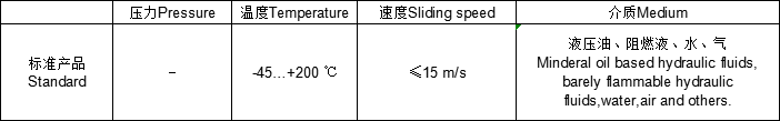 標準材料密封環:填充聚四氟乙烯F-PTFE或聚氨酯PU0形圈:丁腈橡膠NBR或氟橡膠FKM特點-優異的滑動性能-無粘滯,無爬行現象-能補償活塞桿或柱塞的變形-結構緊湊,節省安裝空間-刮除外側污染物的效果非常好,即使是粘結牢固的泥土-從內側刮除活塞桿表面附著殘留油膜的效果非常好-與液壓介質的相容性非常好